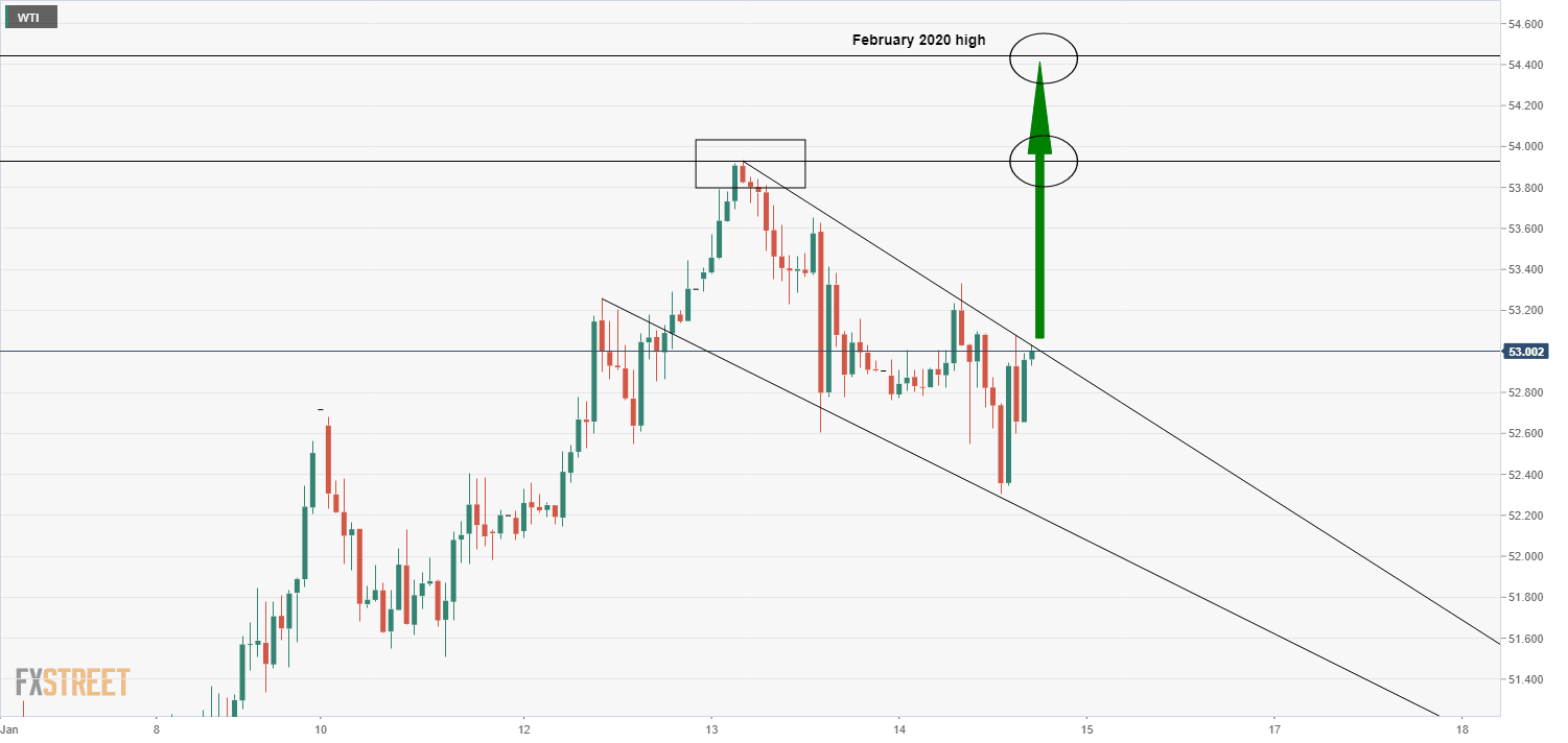 WTI crude subdued below $53.00 as market await key Powell and Biden speeches