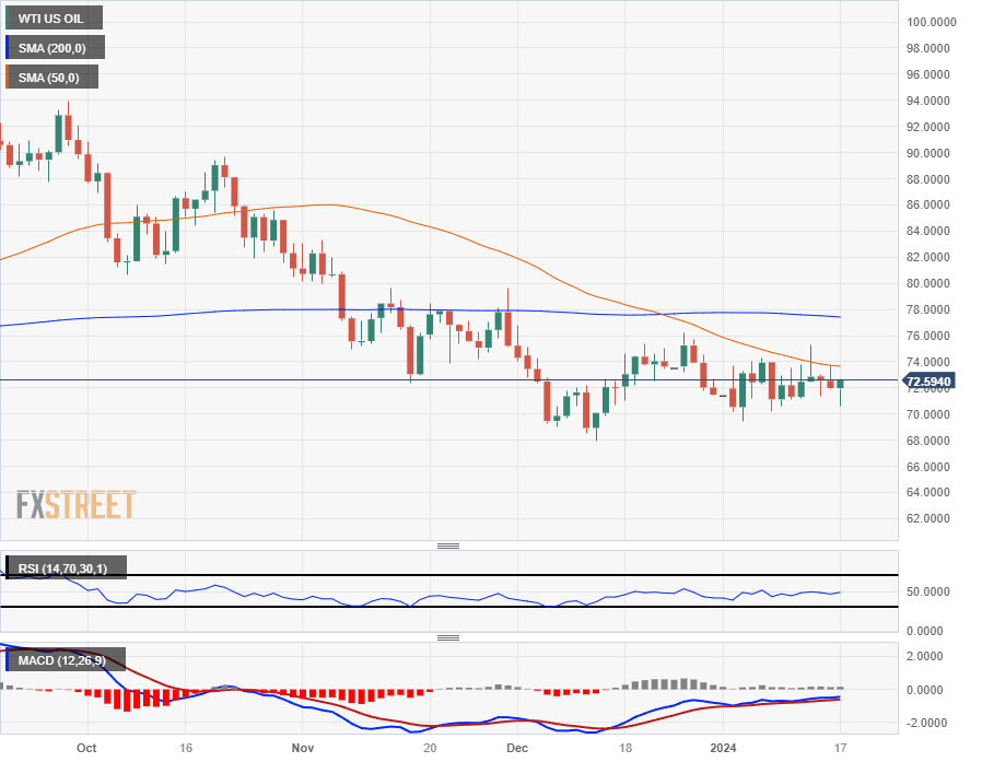 Despite downside pressures, including a rising US Dollar on Wednesday, Crude Oil markets found a leg up on ongoing geopolitical concerns with Iran-backed Houthi rebel is Yemen determined to continue attacking civilian cargo ships passing through the Red Sea en route for the Suez Canal.