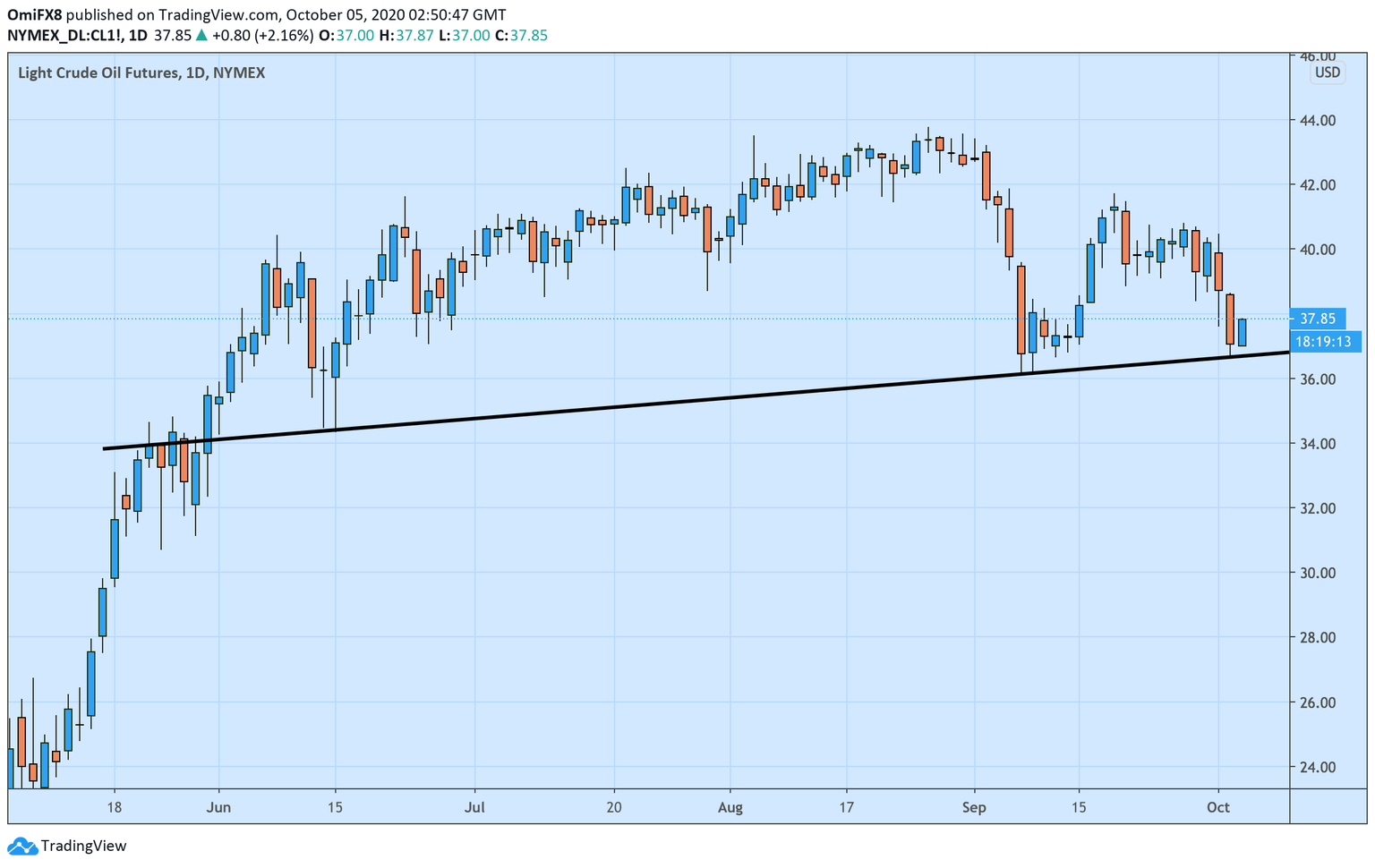 WTI: Good news from Trump's doctors help bulls avoid head-and-shoulders breakdown