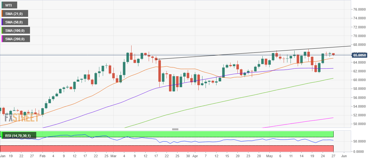 - WTI needs to find acceptance above $66.00 to revive upbeat momentum.