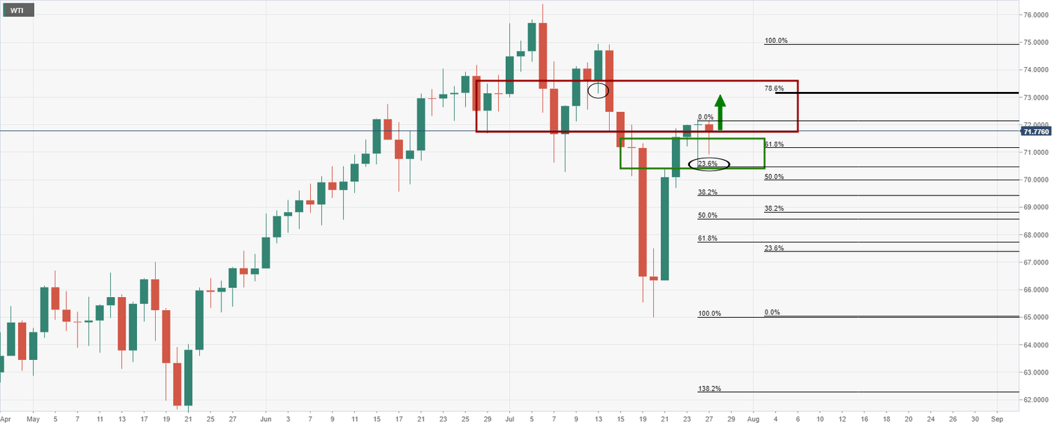 Oil prices could be affected by the outcome of the event from the impact on the US dollar, for which oil is predominately priced, US stocks, the Fed's view on the economy, the delta variant and the possibility of a timetable for tapering.
