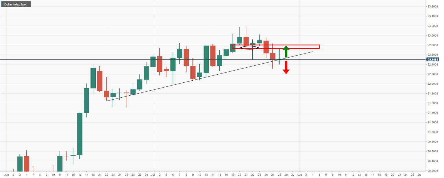 It was stated that the bulls can target the 78.6% Fibonacci retracement of the prior bearing impulse that has a confluence with the 13 July lows at 73.13.