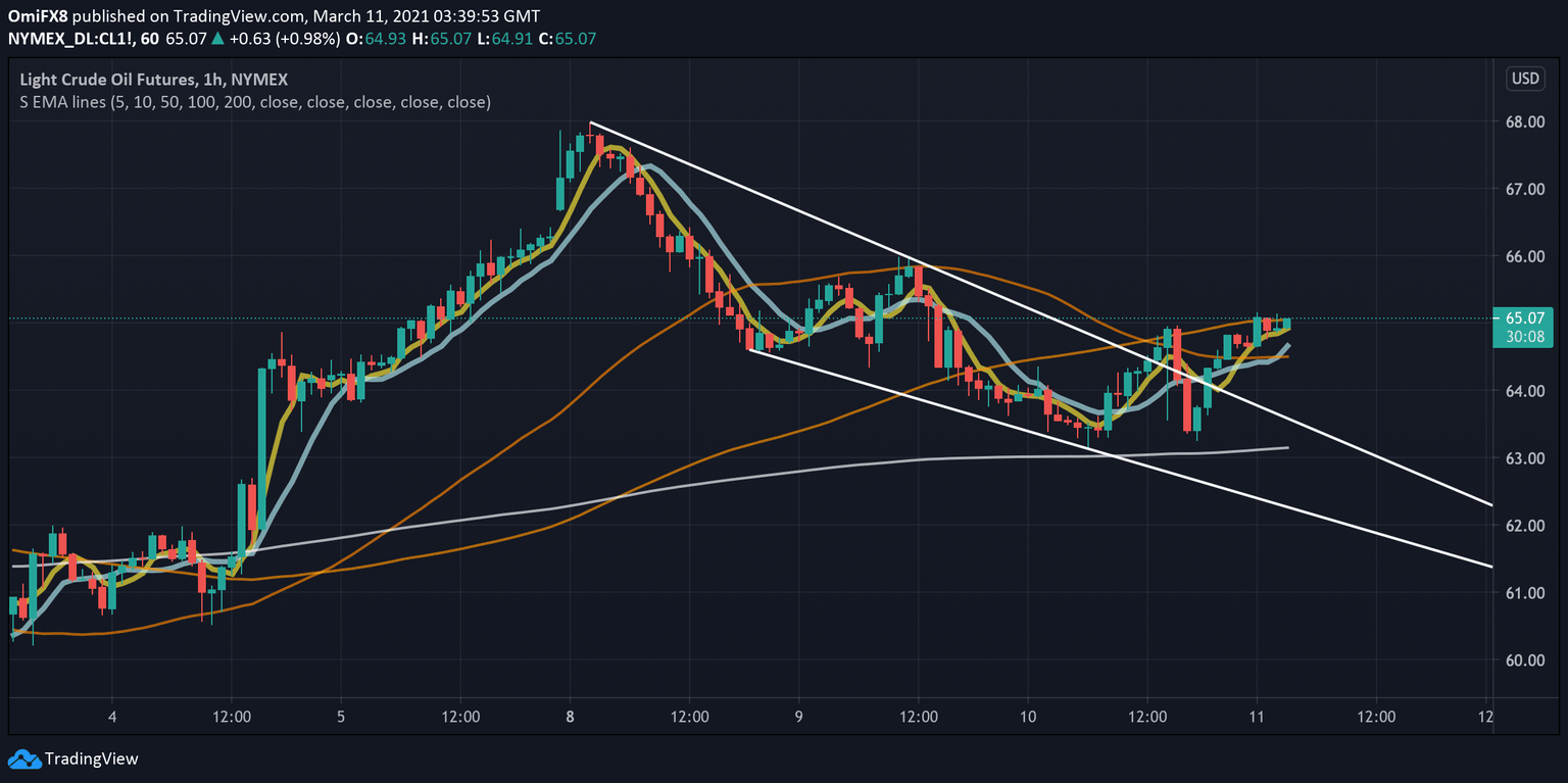 West Texas Intermediate (WTI) crude is currently trading near $65 per barrel.