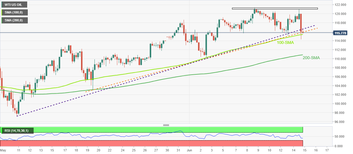WTI Price Analysis: 100-SMA tests bears below $116.00