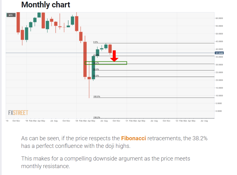 The bulls will now need to overcome structure at the 3rd Sep lows overhead at $40.20/80 which meets a 61.8% Fib of the same daily bearish impulse.