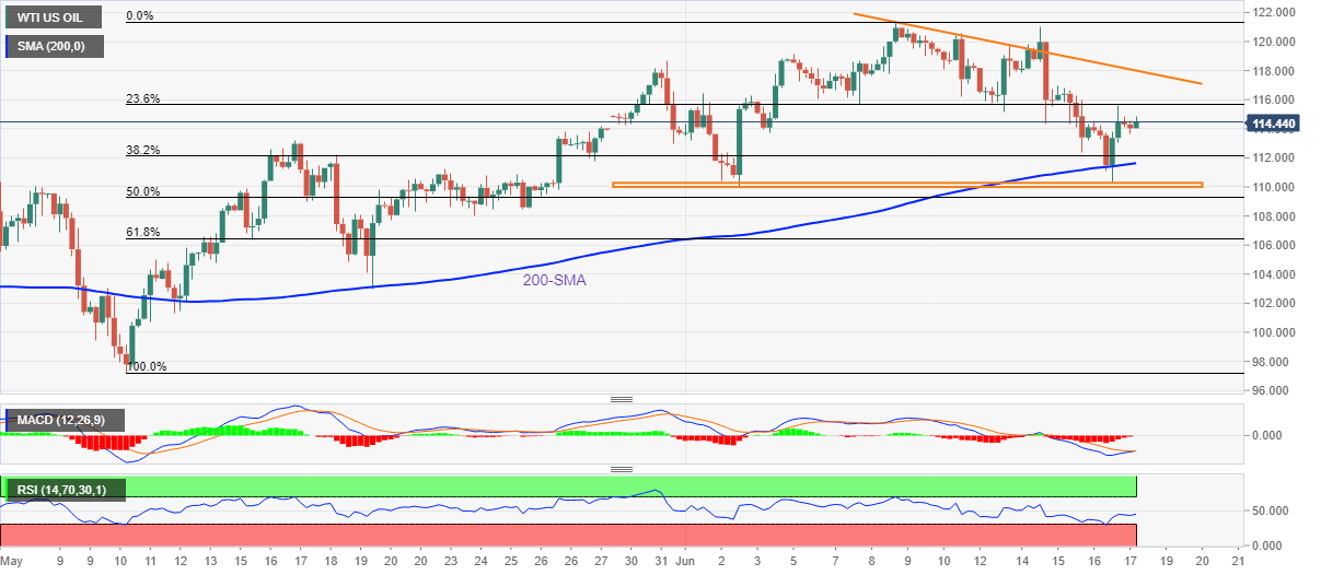WTI remains on the front foot heading into Friday’s European session, after bouncing off a two-week low the previous day. That said, the black gold picks up bids around $114.64, up 0.13% by the press time.