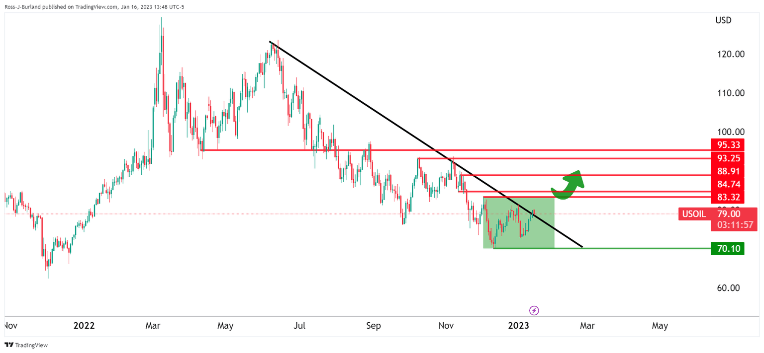 WTI Price Analysis: Bulls press against daily trendline resistance, bears are lurking