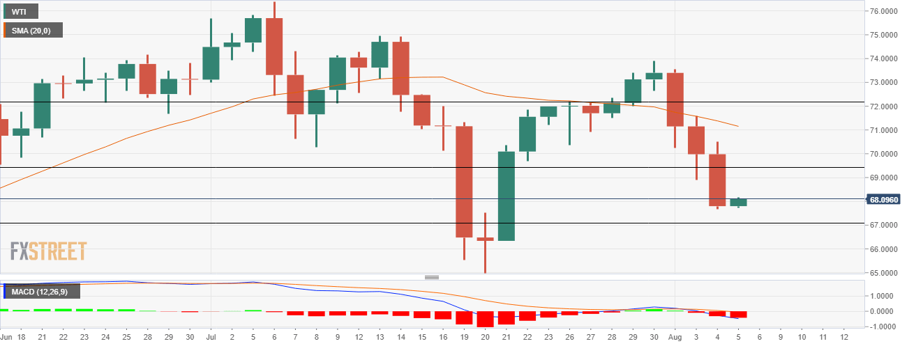 WTI Price Analysis: Bulls remain pressurized below $68.50