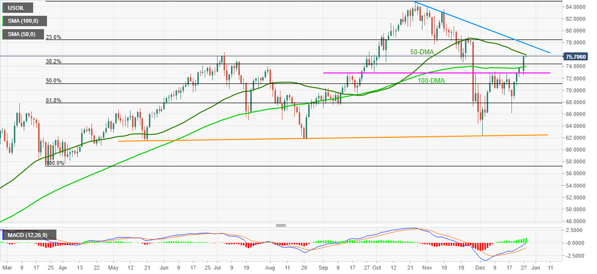 Even so, firmer MACD signals and a clear upside break of the 100-DMA keep WTI bulls hopeful to overcome the $76.00 immediate hurdle.