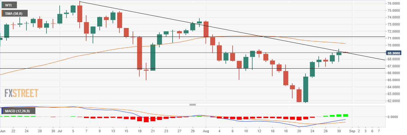 WTI Price Analysis: Bulls struggle above $69 near double top formation