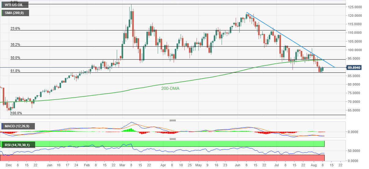 WTI Price Analysis: Defends bounce off 61.8% Fibonacci retracement around $90.00