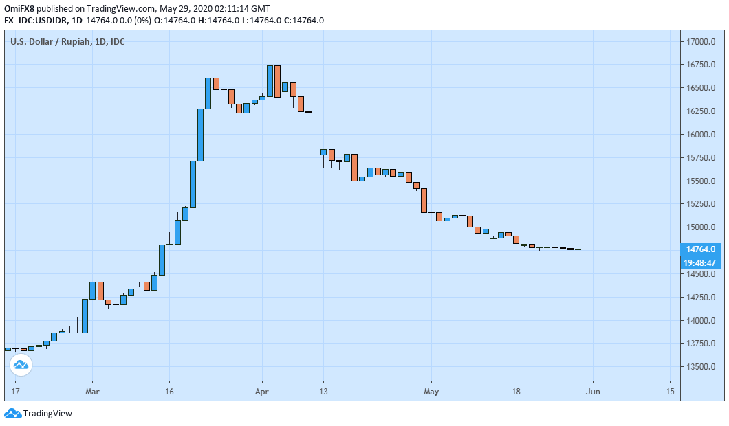 The bullish reversal candlestick pattern indicates the path of least resistance is now to the higher side. That does not necessarily imply a V-shaped rally to highs above $65 observed in early January. Prices can trade in the sideways manner within May's trading range of $34.81 to $18.05 before returning to levels seen in January. A drop to levels below $30 may be seen if the US responds to China's decision to curb Hong Kong's autonomy by imposing sanctions.