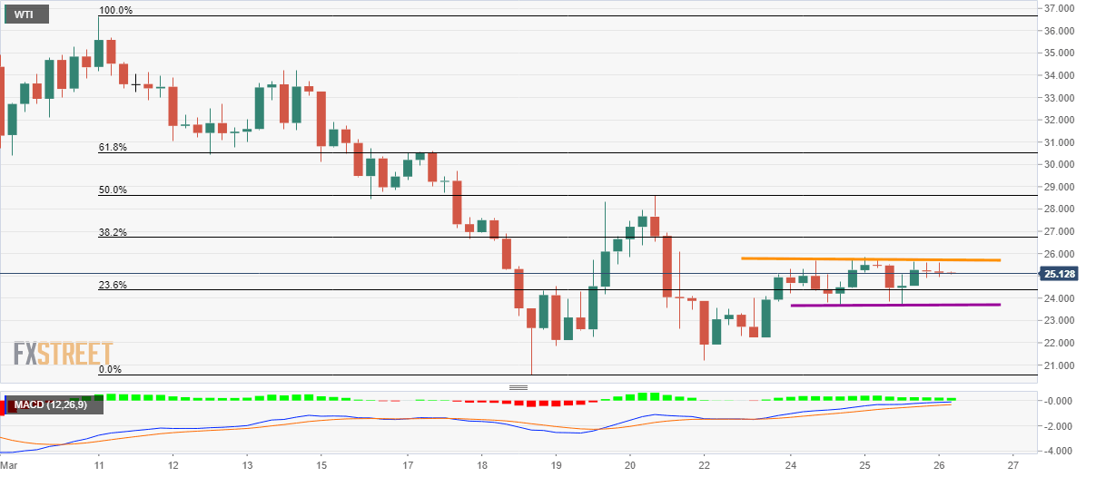 WTI Price Analysis: Sluggish above $25.00 amid bullish MACD