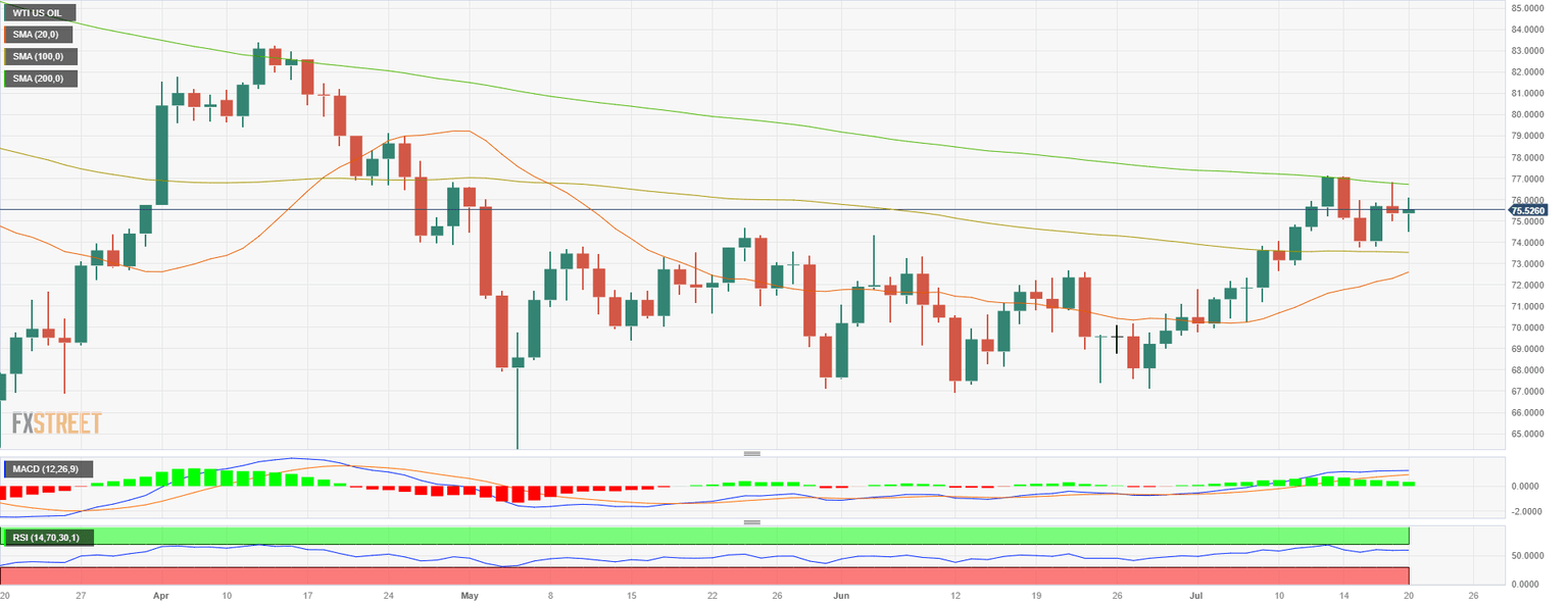 - The WTI peaked at $76.11 and then settled below $76.00.