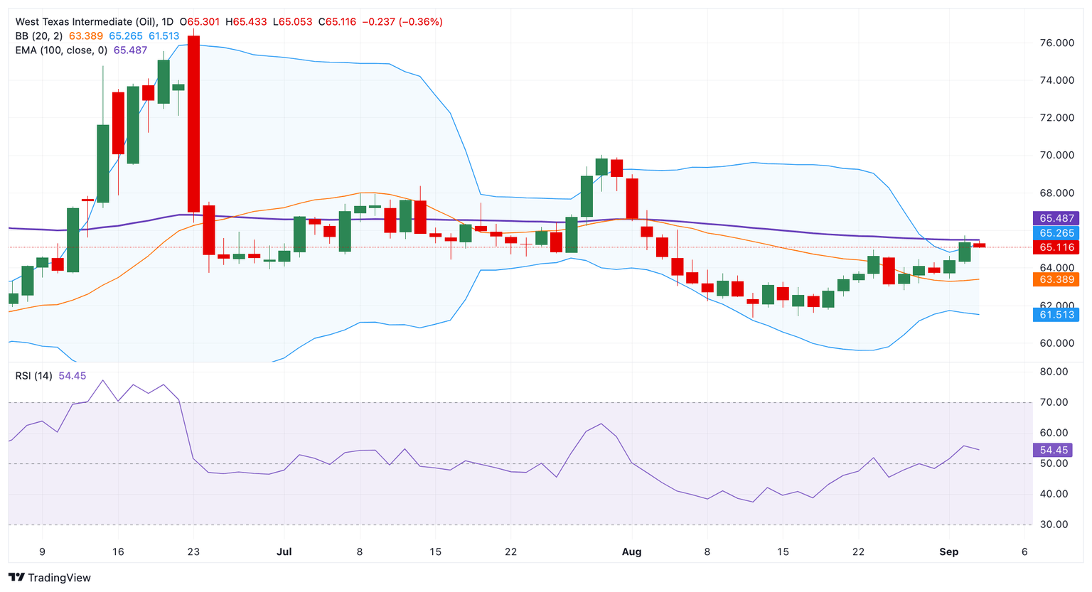 WTI Price Forecast: Bearish bias prevails under 100-day EMA near $65.00