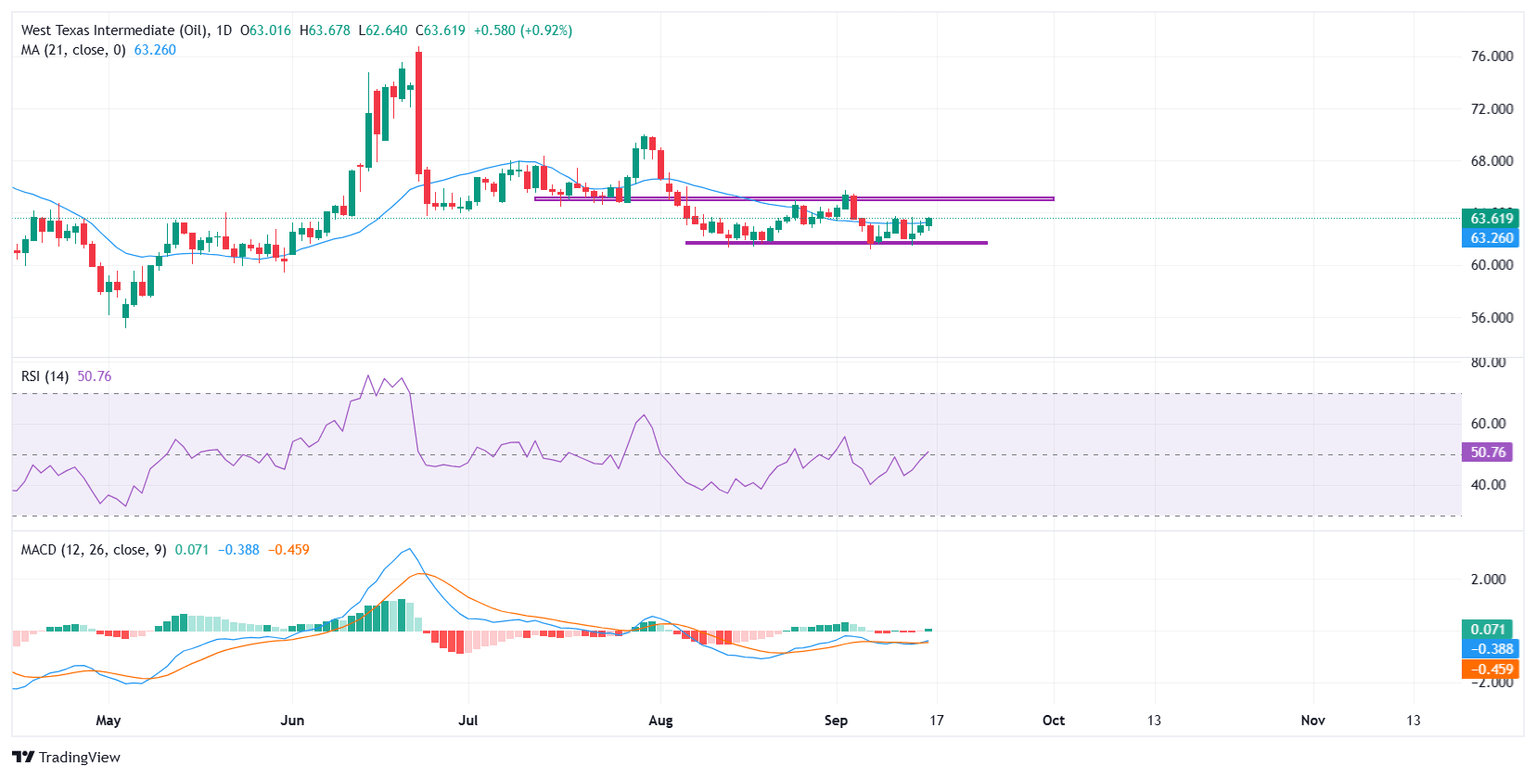 West Texas Intermediate (WTI) Crude Oil continues its recovery on Tuesday, marking a third consecutive daily gain as supply risks stemming from fresh attacks on Russian refineries keep the risk premium intact. At the time of writing, WTI is trading around $63.68, up nearly 1.0% on the day.