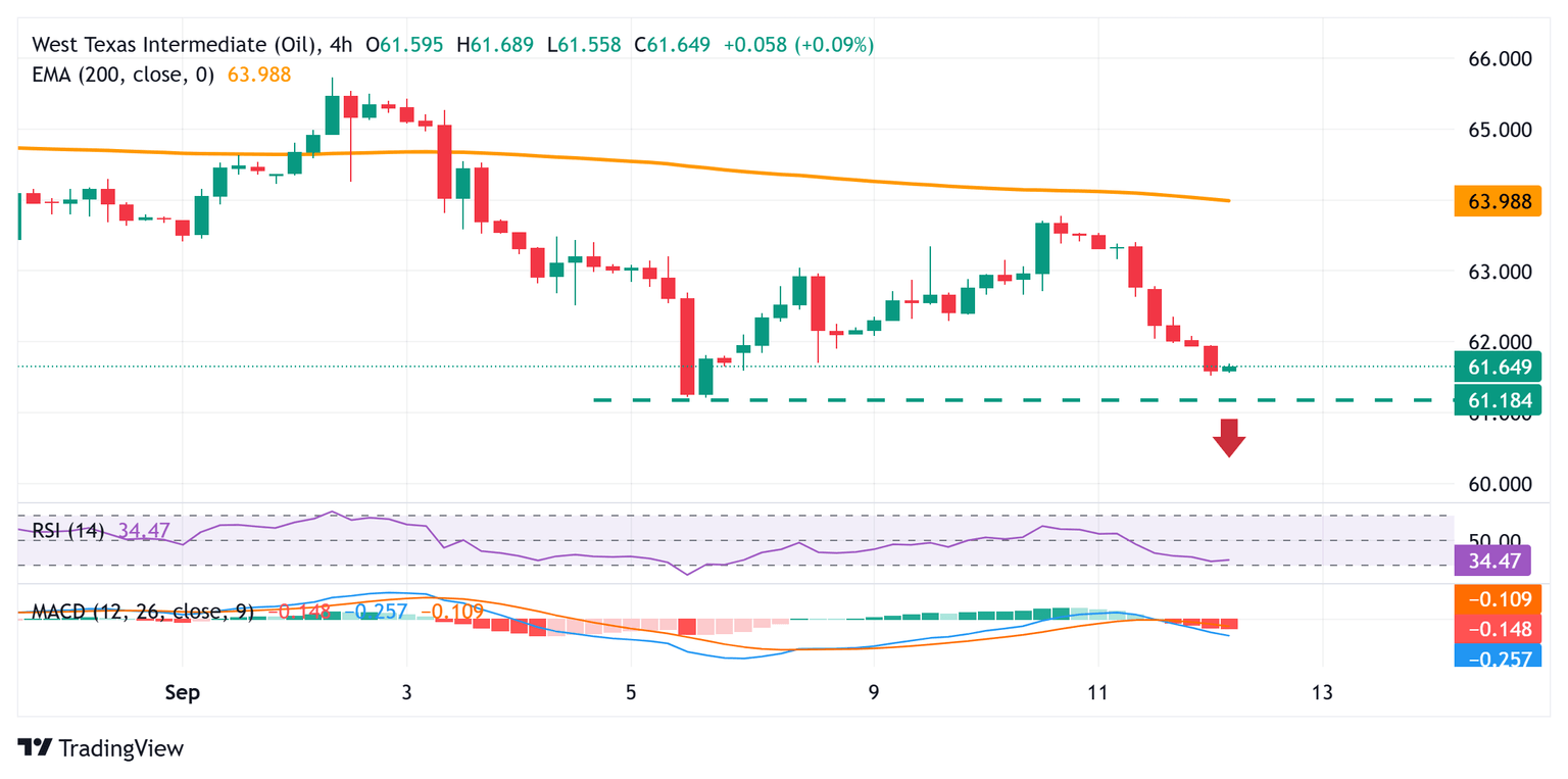 WTI Price Forecast: Slides closer to mid-$61.00s, eyes multi-month low amid bearish setup
