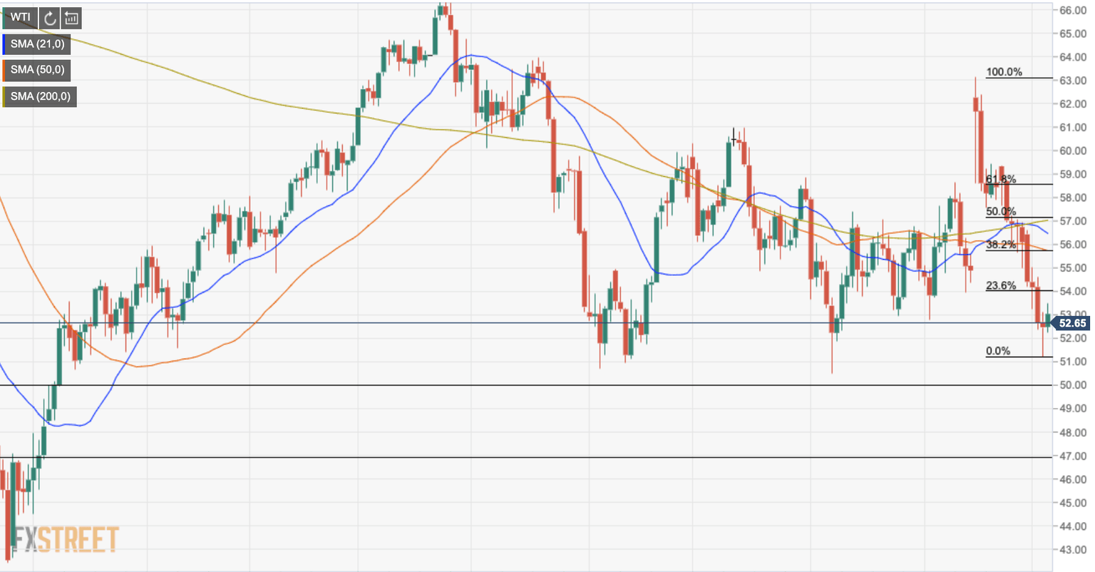 WTI technical analysis: Under pressure in Asia with a spike to a fresh daily low