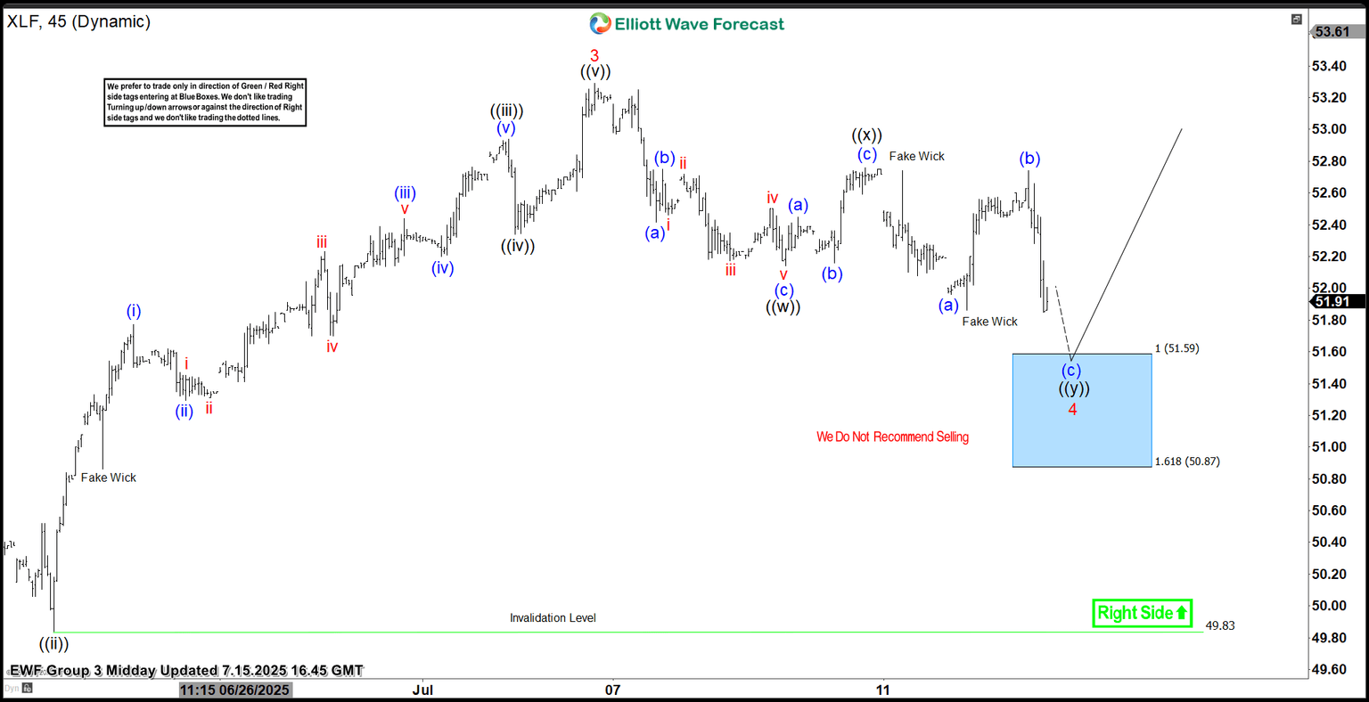 XLF one-hour Elliott Wave chart from 7.15.2025