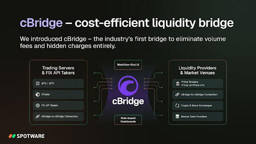 After years of development, Spotware introduced cBridge to market in 2025. A modern, broker-focused solution for liquidity connectivity, cBridge is highly cost-efficient, eliminating volume fees and hidden charges entirely. It combines a scalable modular architecture and workflow-first design. The validation of cross-settings and intuitive health checks of rule sets ensure safe operation.