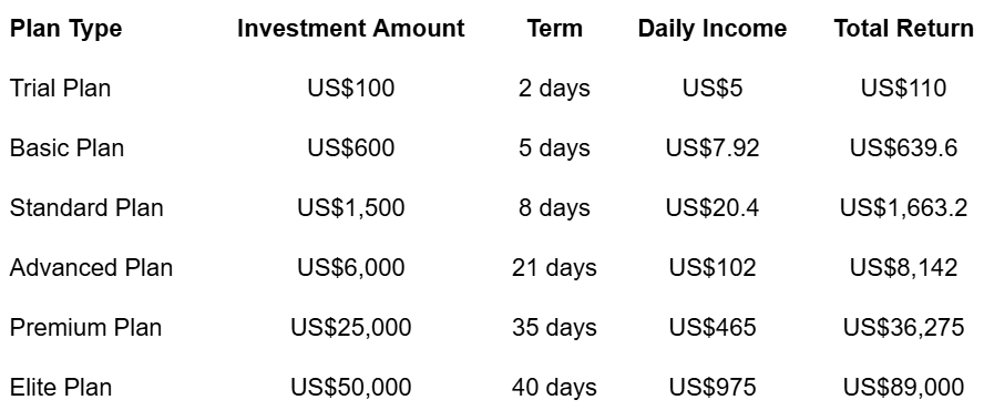Once the contract is activated, the system automatically allocates daily yields, which you can withdraw or reinvest at any time.